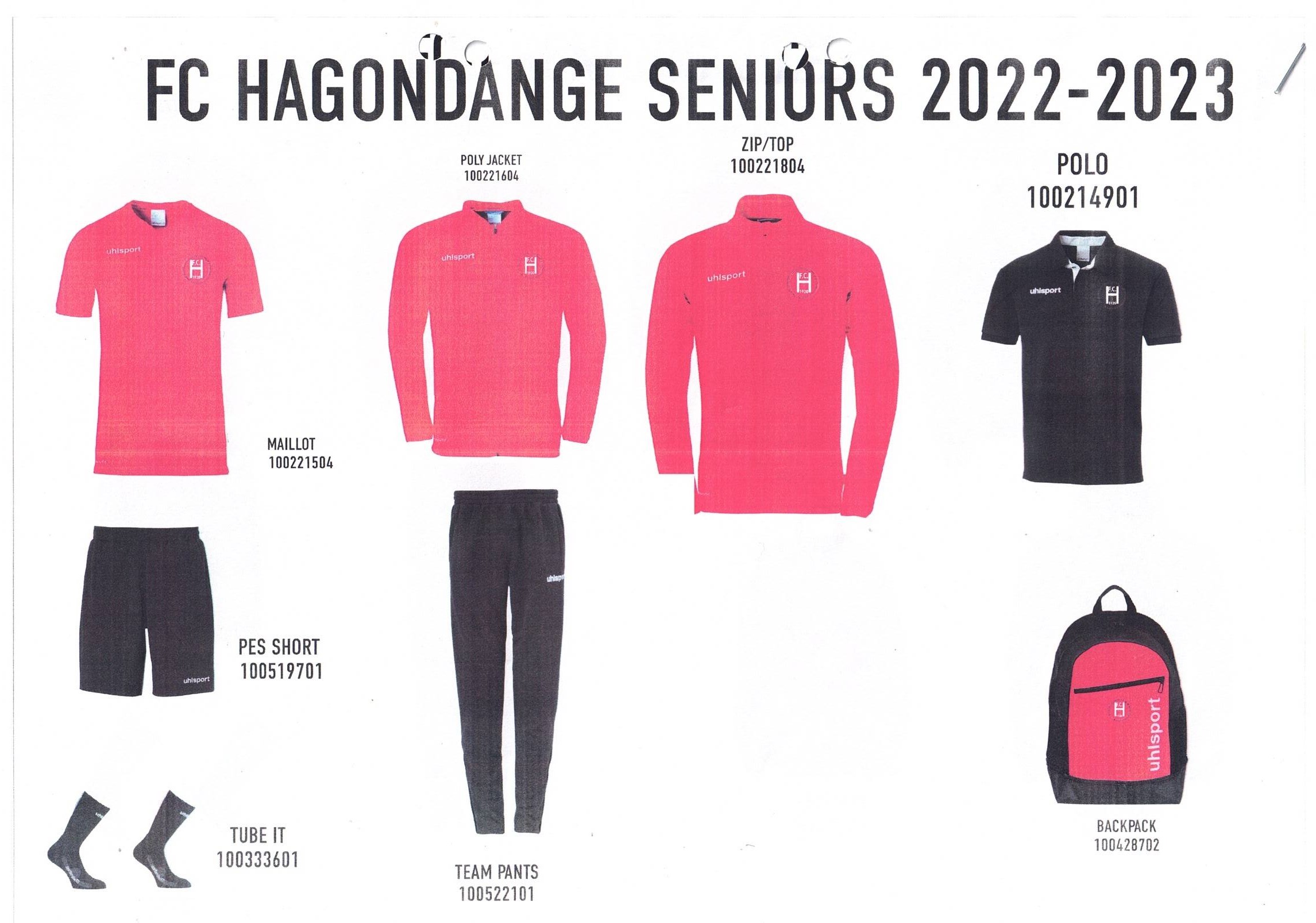 Composé d'un maillot + short+ chaussettes, d'un survêtement ( haut+ bas), d'une veste , d'un polo et d'un sac.